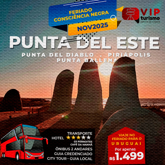 🇺🇾 PUNTA DEL ESTE + PUNTA DEL DIABLO + PIRIÁPOLIS + PUNTA BALLENA + CHUÍ 🇺🇾 Feriadão C. Negra **R$ 1.499, à vista**
